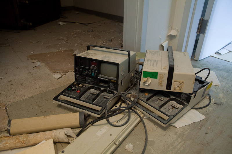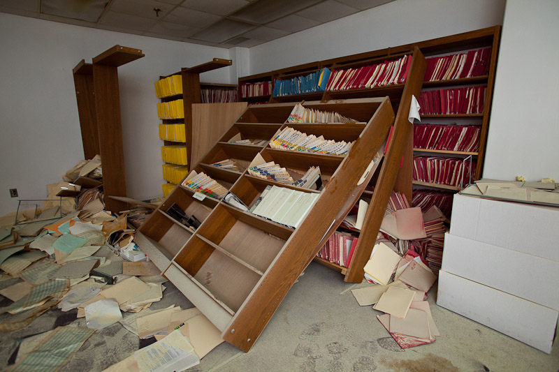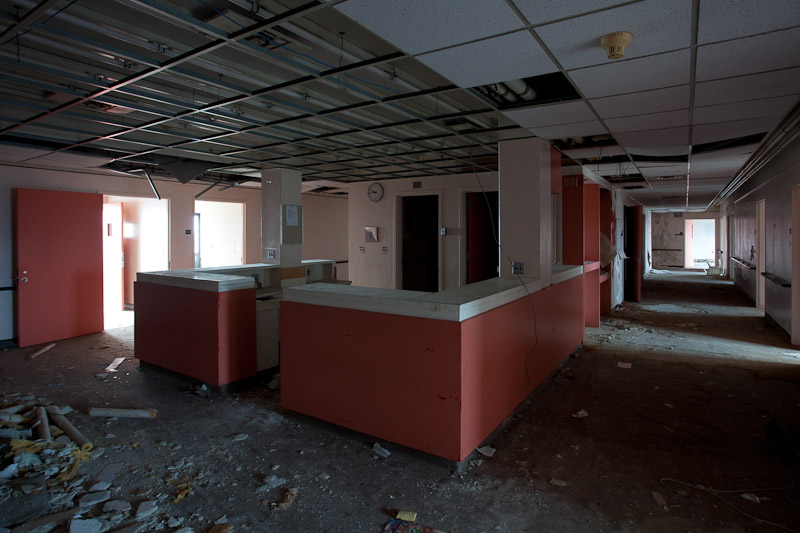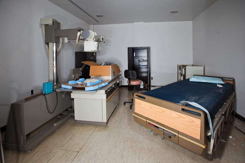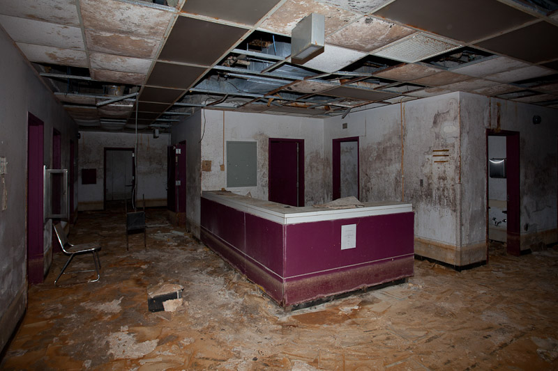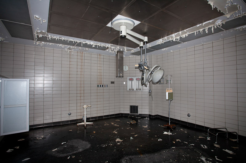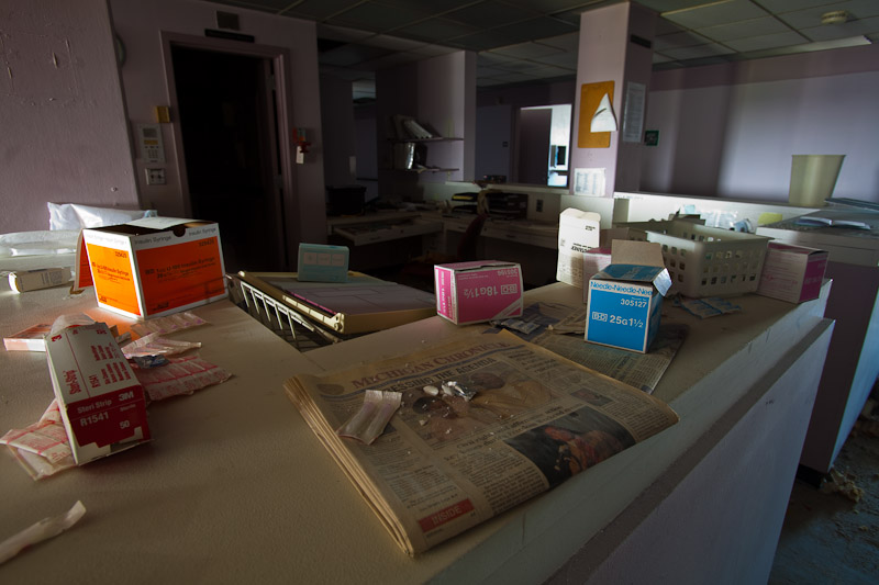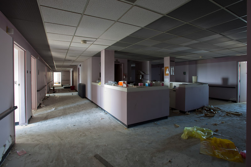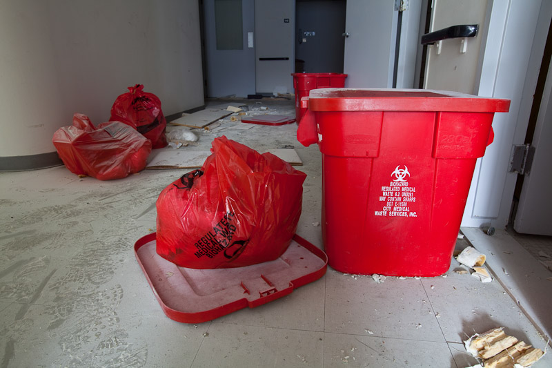 Once again the hospital was vacant as its owner went through bankruptcy court, though this time it would not reopen. As the utilities were shut off and maintenance on the building was halted, the loading dock and basement beneath the hospital flooded, filling up with slimy green water. Scrappers made their way into the building and removed much of the plumbing and wiring, and vandals knocked out many of the windows. Patient records could be found blowing around the hospital parking lot, while plastic bags of biohazard waste were left piled up in the emergency room.