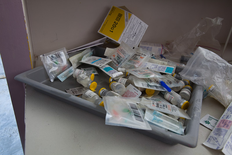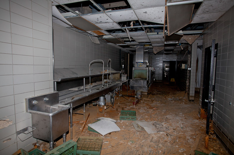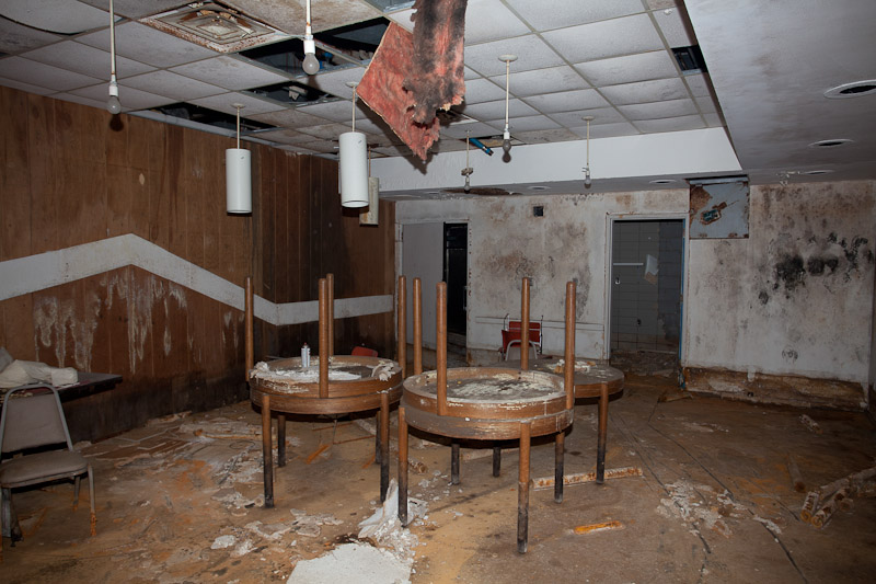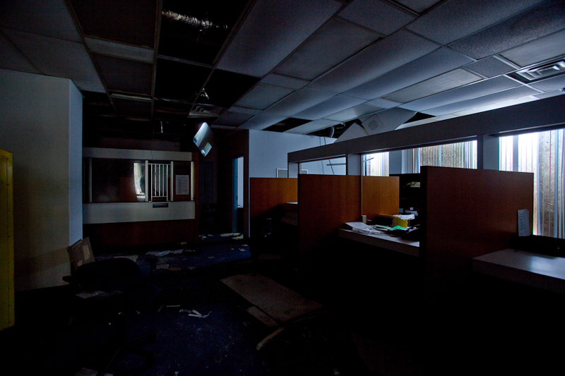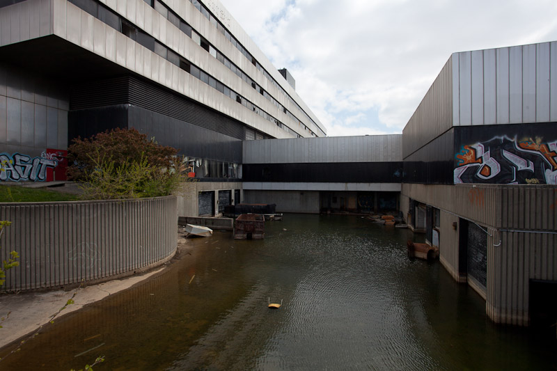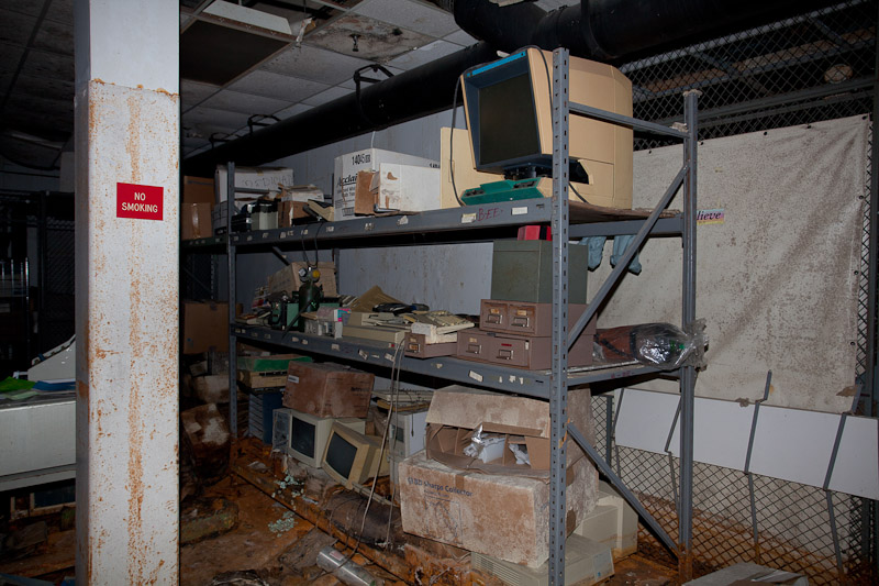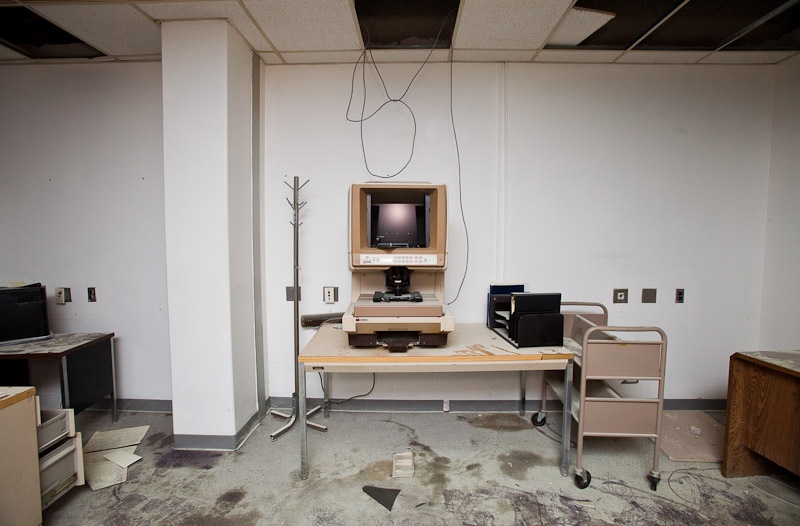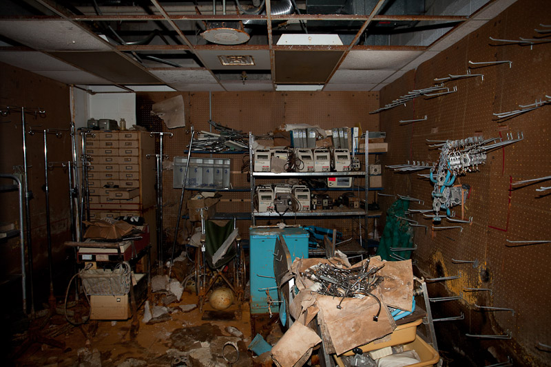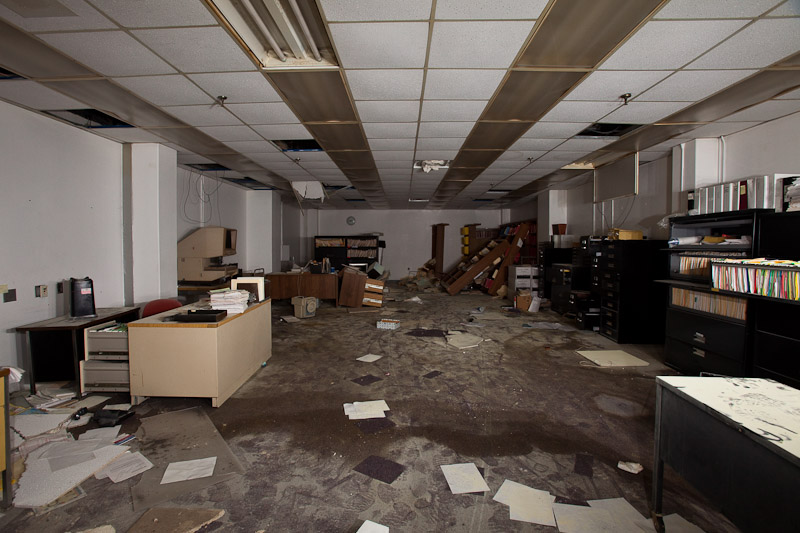 Once again the hospital was vacant as its owner went through bankruptcy court, though this time it would not reopen. As the utilities were shut off and maintenance on the building was halted, the loading dock and basement beneath the hospital flooded, filling up with slimy green water. Scrappers made their way into the building and removed much of the plumbing and wiring, and vandals knocked out many of the windows. Patient records could be found blowing around the hospital parking lot, while plastic bags of biohazard waste were left piled up in the emergency room.