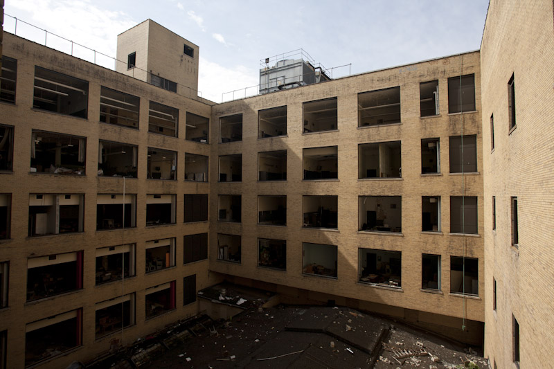Looking into the light well over the old gym and pool.