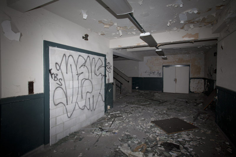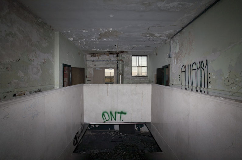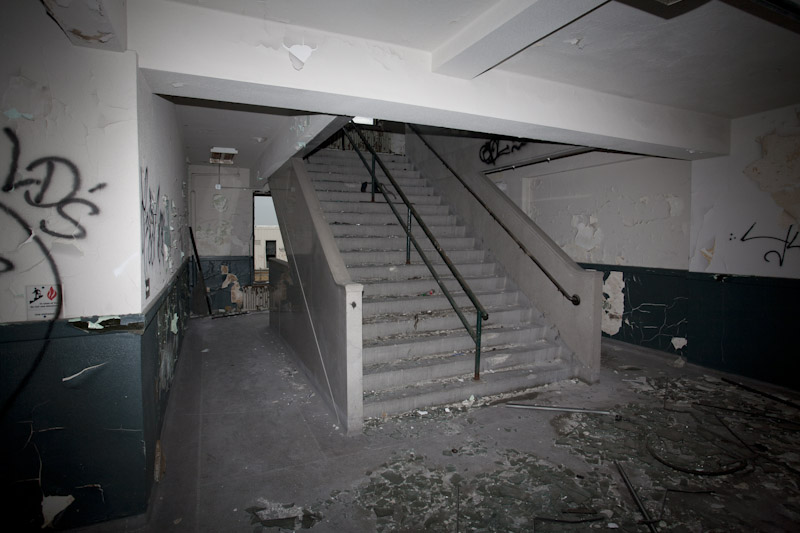 A truncated stairwell that leads up to the mezzanine level above the 7th floor.