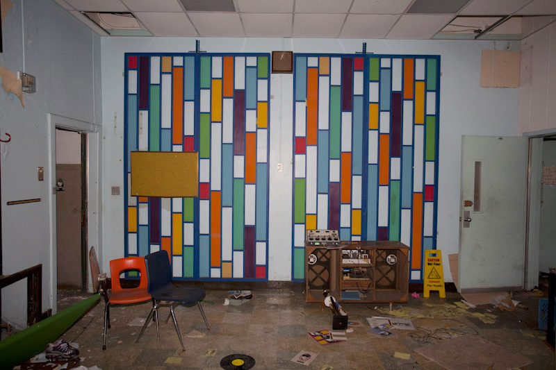 Originally a restroom, this room was eventually converted into the school radio studio and t.v. control room. This is also listed in some early blueprints as room 111.